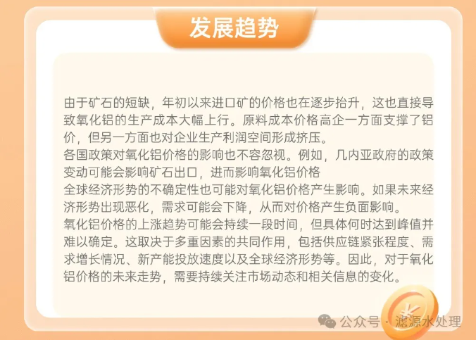今日科普知識---氧化鋁為何“瘋”漲! 咨詢熱線:15638187355 在線咨詢 產品詳細 上一篇:重金屬廢水處理技術全解析! 下一篇:【水處理知識分享】如何科學補充堿度,優化廢水處理效果 用手機看 拍下二維碼,信息隨身看 試試用手機掃一掃,在你手機上繼續觀看此頁面。