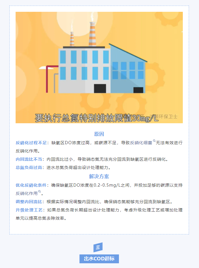 出水氨氮、TN、COD超標的原因及解決方案 咨詢熱線:15638187355 在線咨詢 產(chǎn)品詳細 上一篇:《人民日報》: 再生水為城市補充第二水源 下一篇:你真的了解除氟劑嗎? 用手機看 拍下二維碼,信息隨身看 試試用手機掃一掃,在你手機上繼續(xù)觀看此頁面。