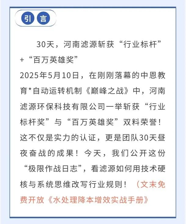 《雙冠加冕!河南濾源斬獲“行業標桿”+“百萬英雄獎”,揭秘逆襲背后的30天極限攻堅!》